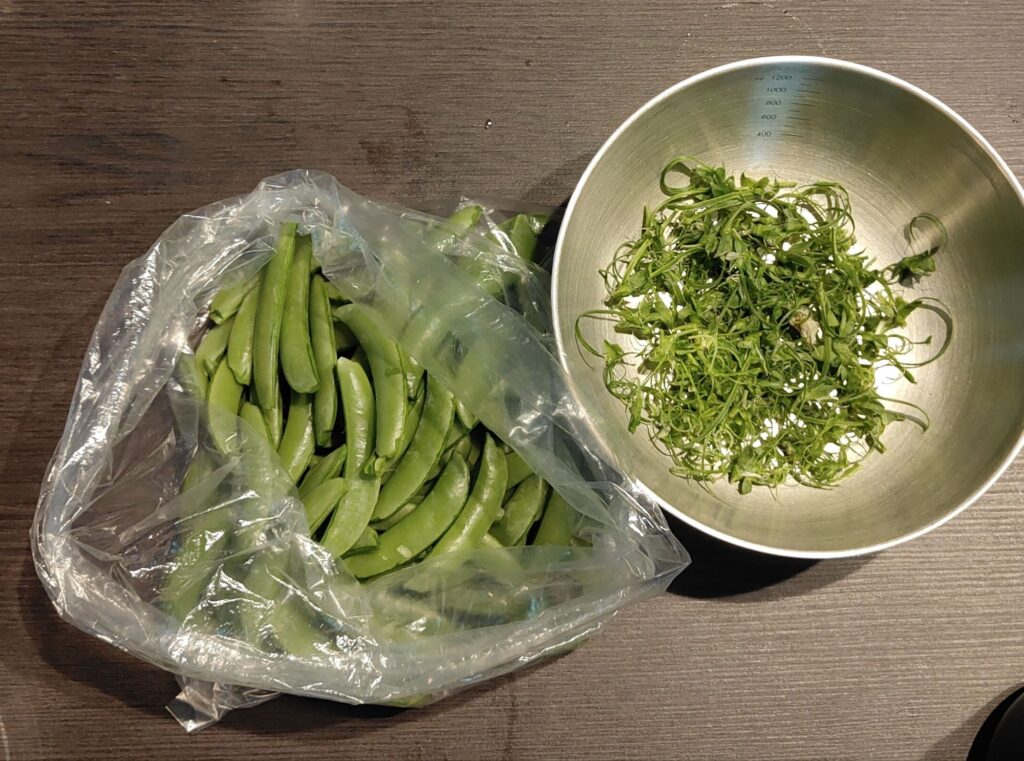 スナップエンドウは火に通したときの鮮やかな緑色と、食感がいいですよね。火を通しすぎないほうがシャキッと感がでて好きです。
